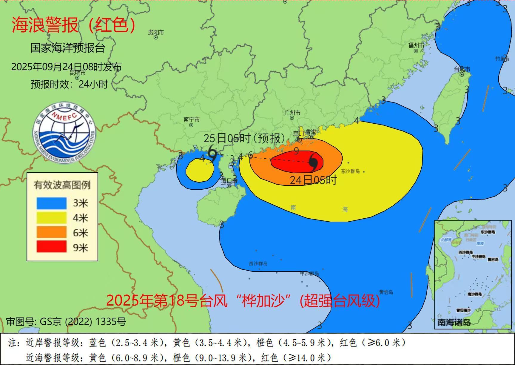 预计9月24日上午到25日上午,南海西北部将出现7到12米的狂浪到狂涛区,南海东北部将出现4到6米的巨浪到狂浪区股票配资财经网,北部湾将出现3到4.5米的大浪到巨浪区,近海海域海浪预警级别为橙色;广东近岸海域将出现4到7米的巨浪到狂浪,该近岸海域海浪预警级别为红色,福建南部、海南东部、广西近岸海域将出现2.5到3.5米的大浪,该近岸海域海浪预警级别为黄色,福建北部、浙江南部近岸海域将出现2到2.8米的中浪到大浪,该近岸海域海浪预警级别为蓝色。请在上述海域作业的船只注意安全,沿海各有关单位提前采取防浪避浪措施。